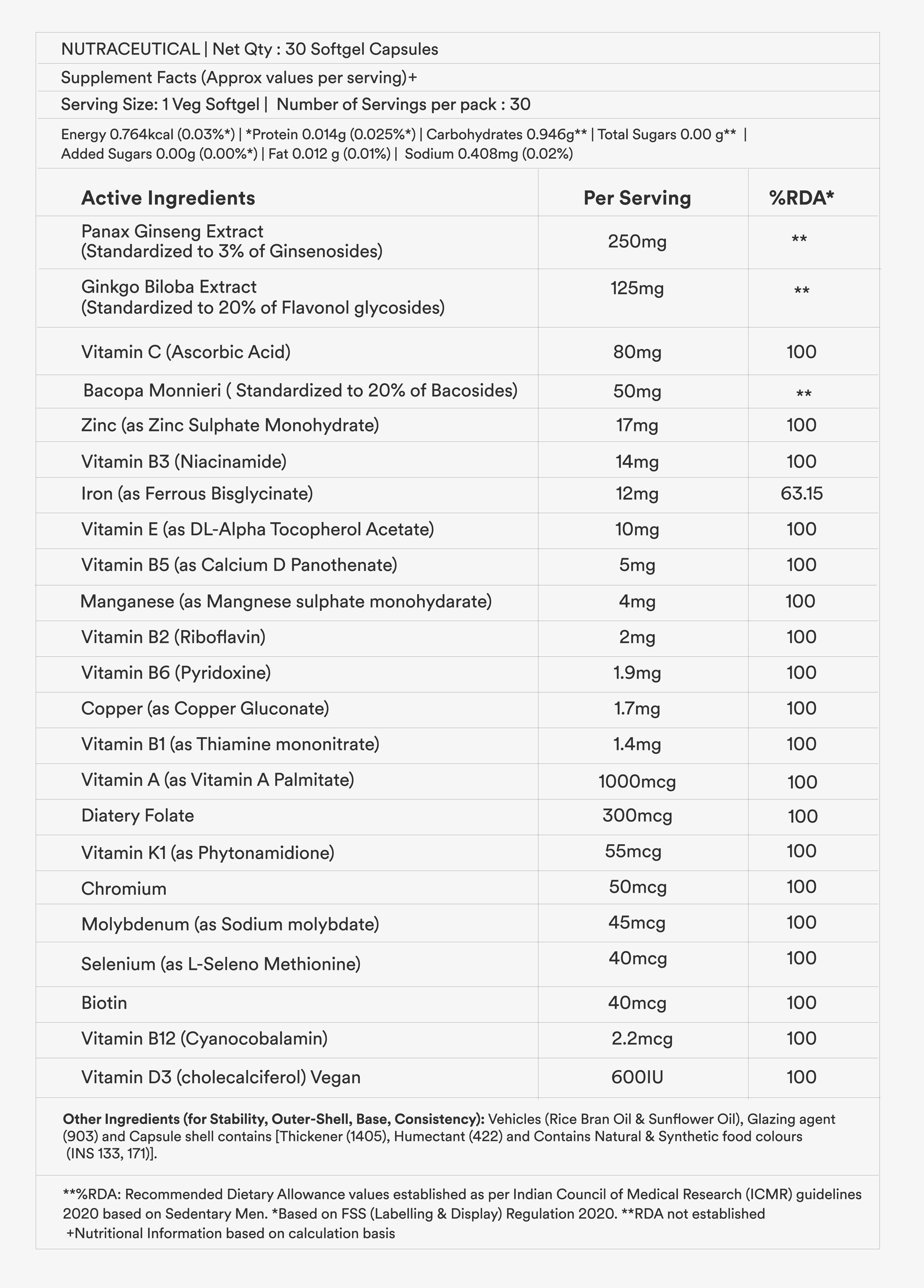 We’ve designed this multi just for men aged 18 to 40, with the right balance of essential nutrients and botanical extracts. It provides nearly 100% RDA for key vitamins, with no conflicting ingredients and complete transparency.