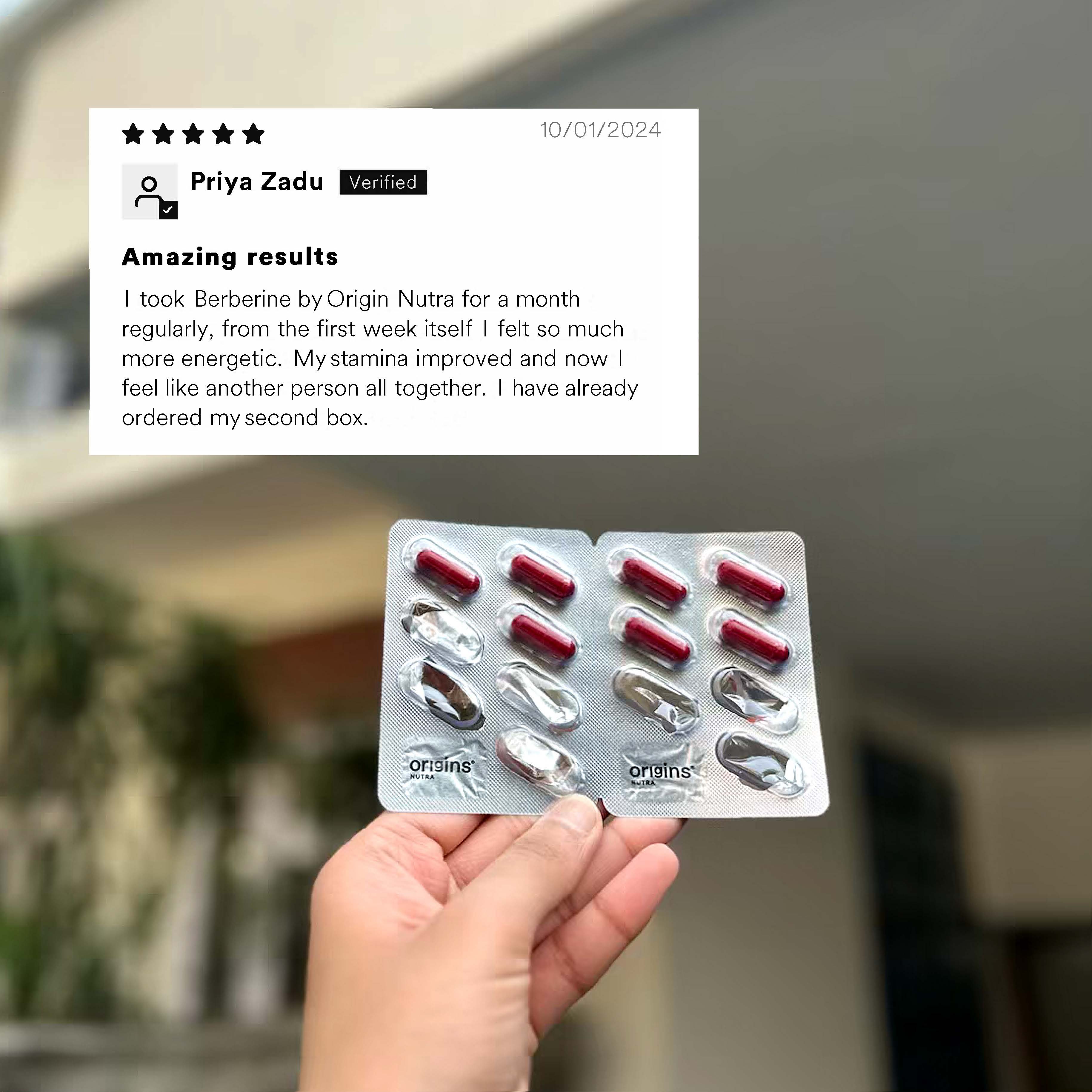 Origin's Berberine Supplement activates AMPK, a key regulator of cellular energy metabolism, promoting weight management and balanced blood sugar levels. Its unique blend of ingredients harmonizes to regulate insulin, balance hormones, and enhance mitochondrial function, supporting overall health, cardiovascular wellness, and immune system benefits. Crafted with powerful herbs, this pure, natural, and gluten-free supplement is your trusted choice for metabolism support.