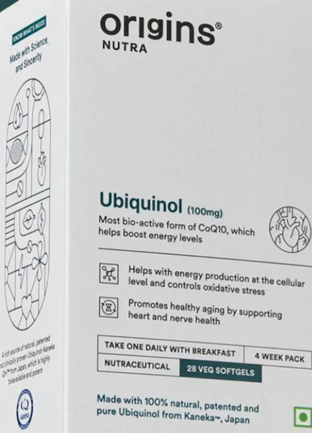 Origins Nutra’s Ubiquinol supplement features premium ubiquinol sourced from Kaneka®, Japan, a trusted name in quality and effectiveness. This potent antioxidant supports healthy aging by enhancing cellular energy production, promoting cardiovascular health, and strengthening cognitive function.