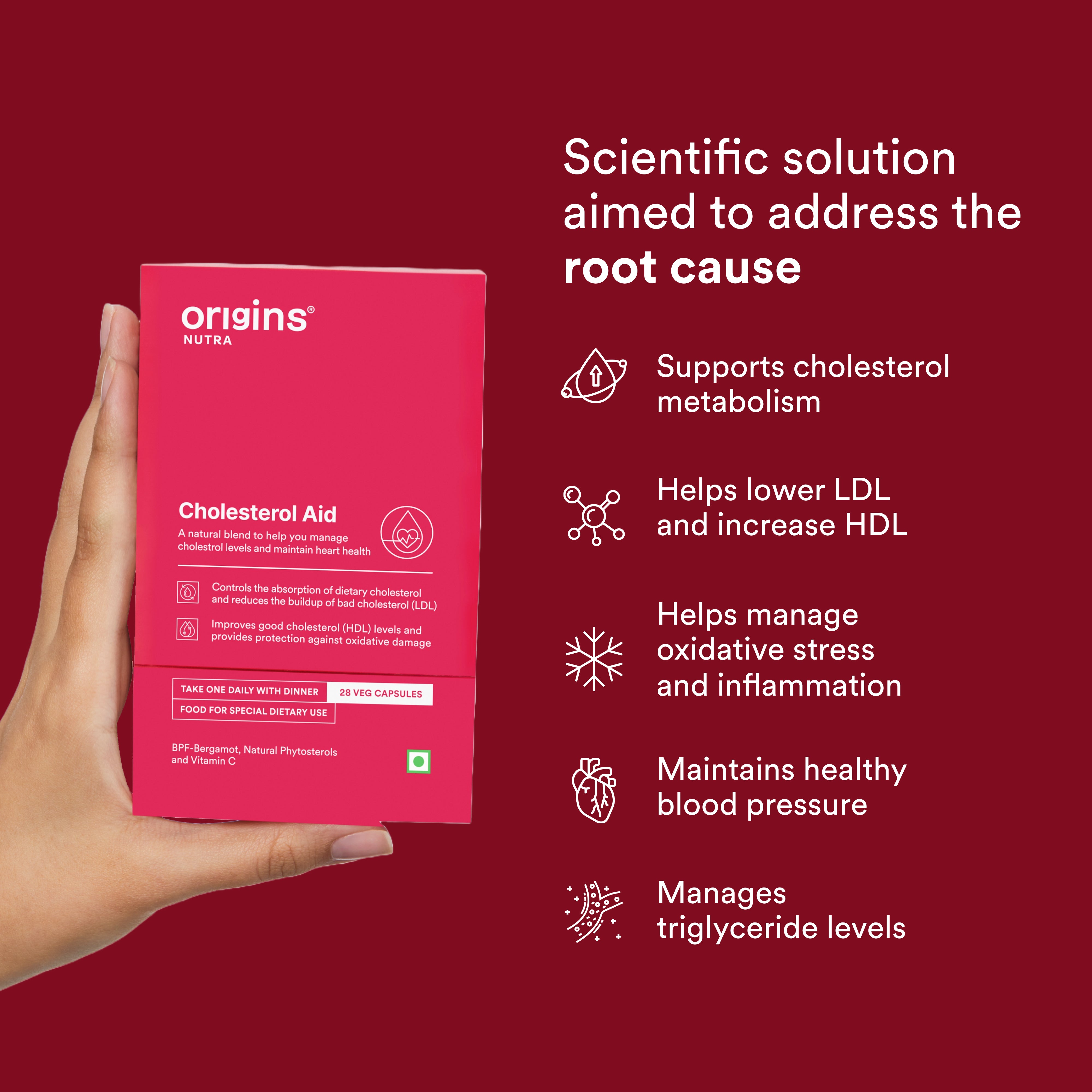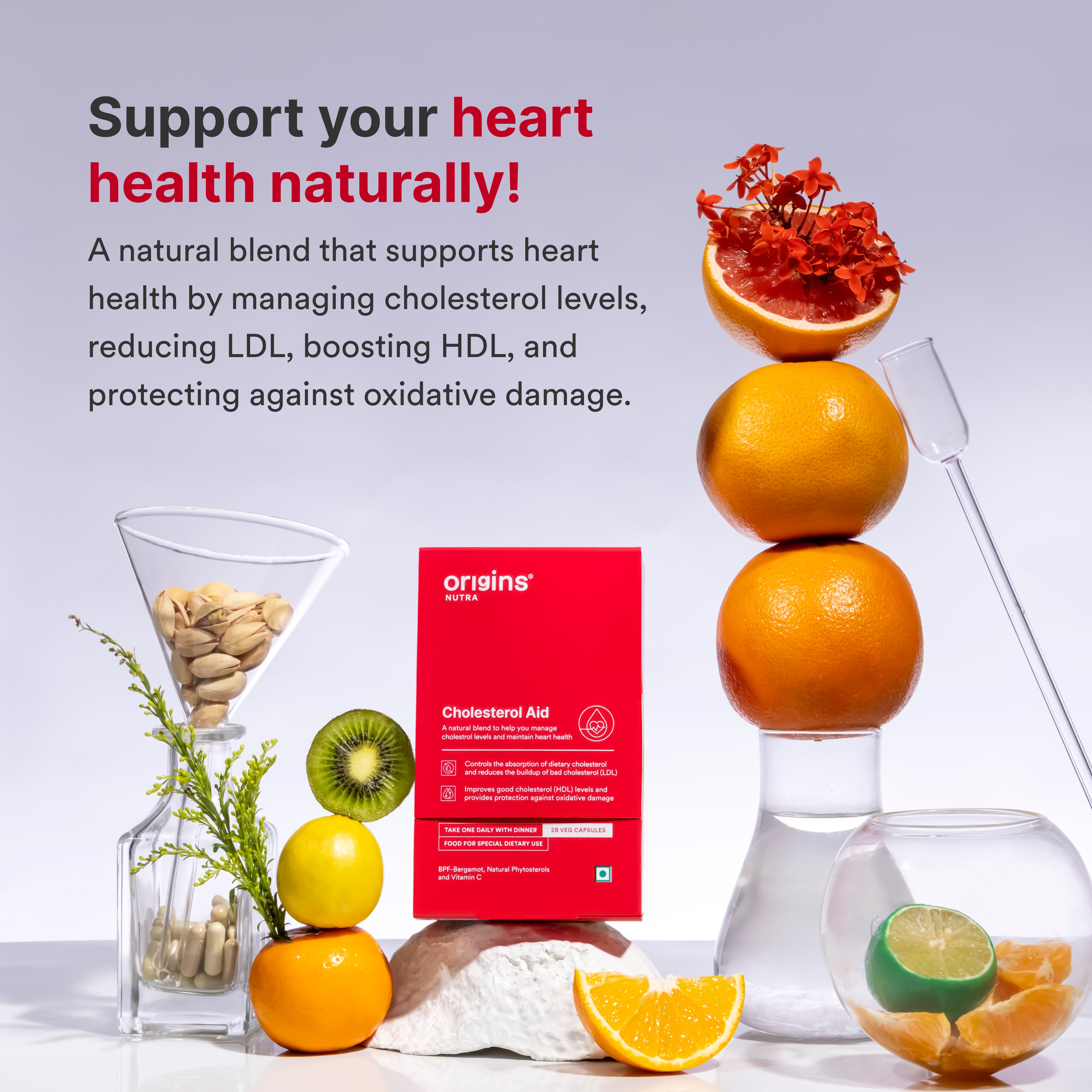 Origins Nutra Cholesterol Aid is expertly formulated to support healthy cholesterol levels, promote cardiovascular health, and provide antioxidant protection. This supplement combines plant-based ingredients to help reduce LDL cholesterol and increase HDL cholesterol, maintaining a balanced lipid profile.