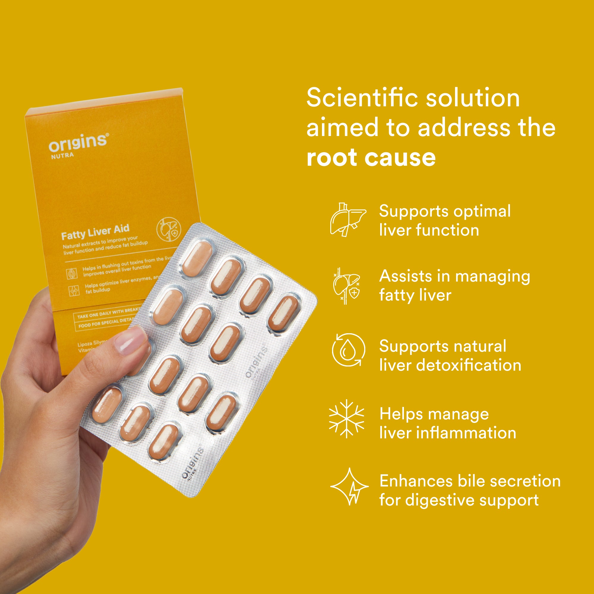 Origin's Fatty Liver Aid - Promotes Liver Health Through Support & Detoxification, Antioxidant Defence, Increased Energy Levels, Improved Digestion and Overall Well-Being - With Powerful Ayurvedic Herbs - Pure, Natural, and Gluten-Free - Trusted Liver Support.
