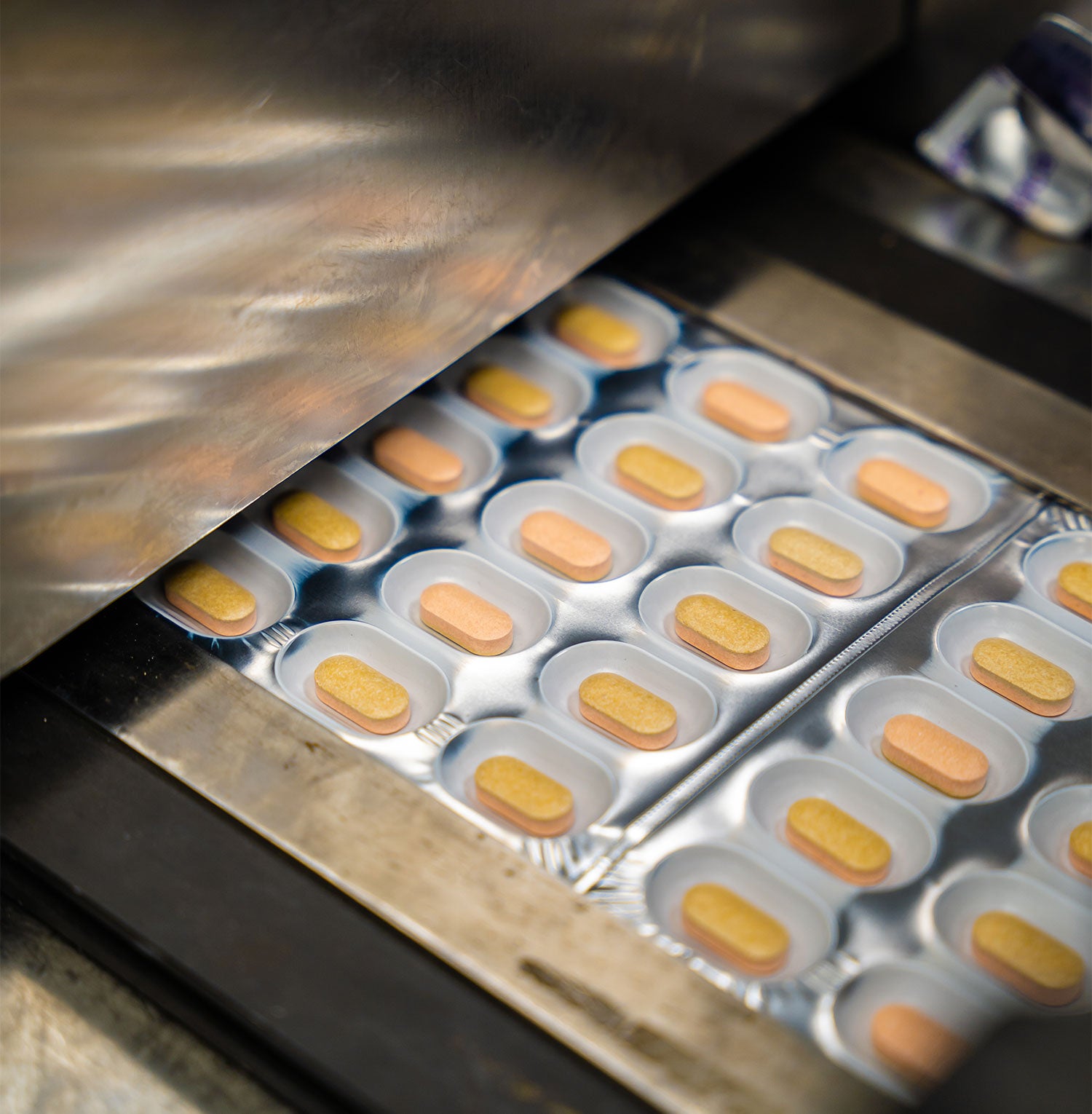Once all the final checks are done, the pills are packed into nitrogen flushed PVC packs, to ensure they are free from moisture and have a longer shelf life.