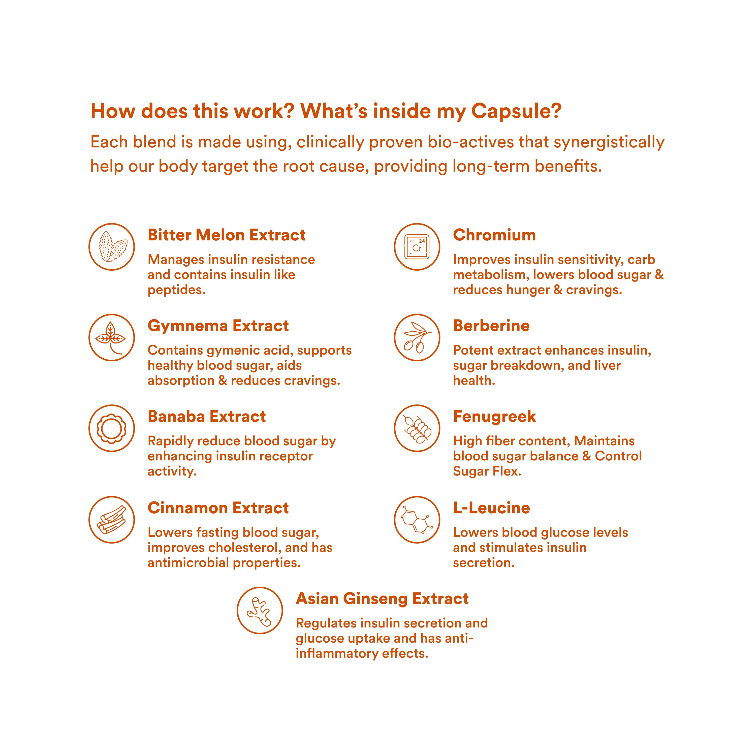 It contains clinically studied ingredients that support insulin sensitivity, glucose metabolism and overall blood sugar regulation.