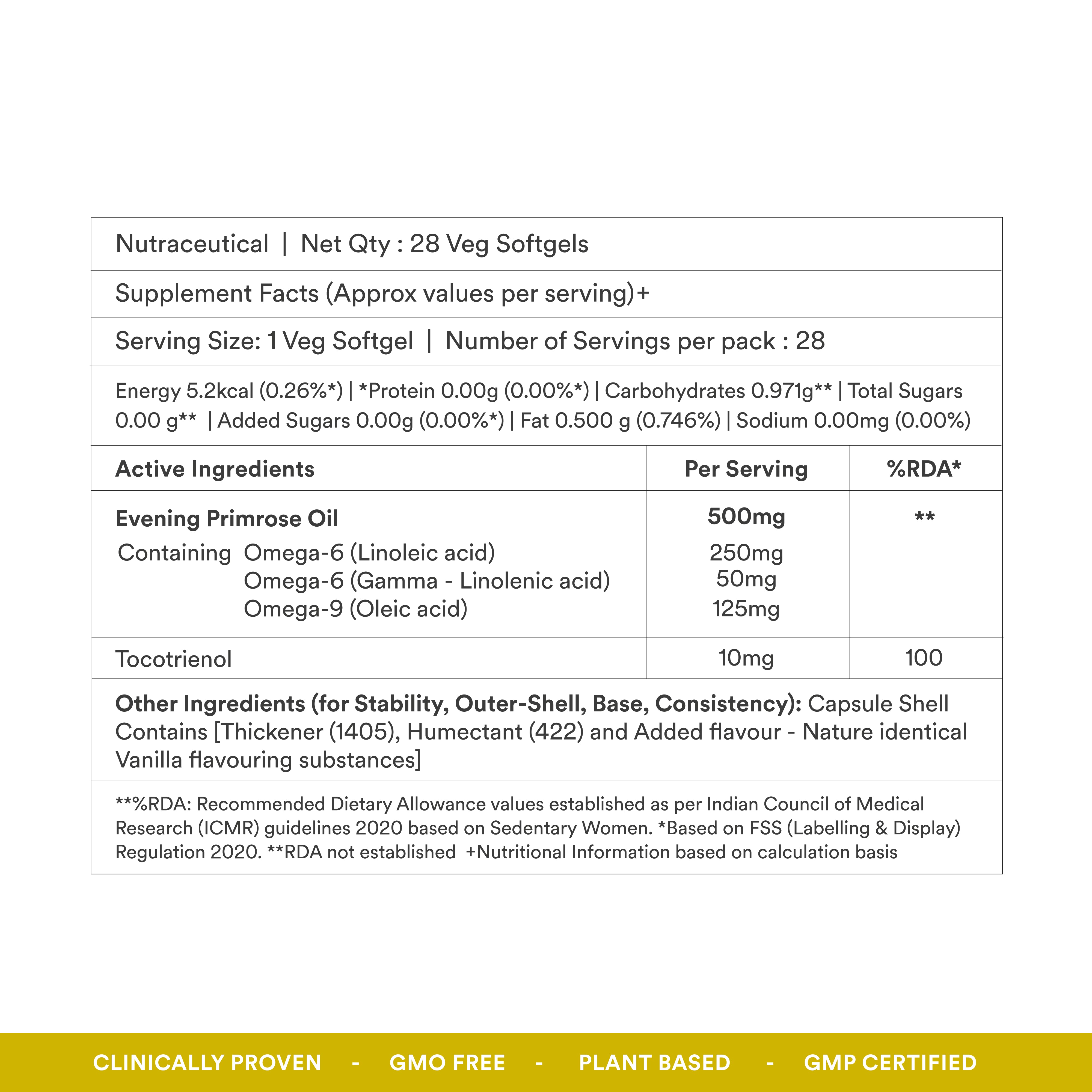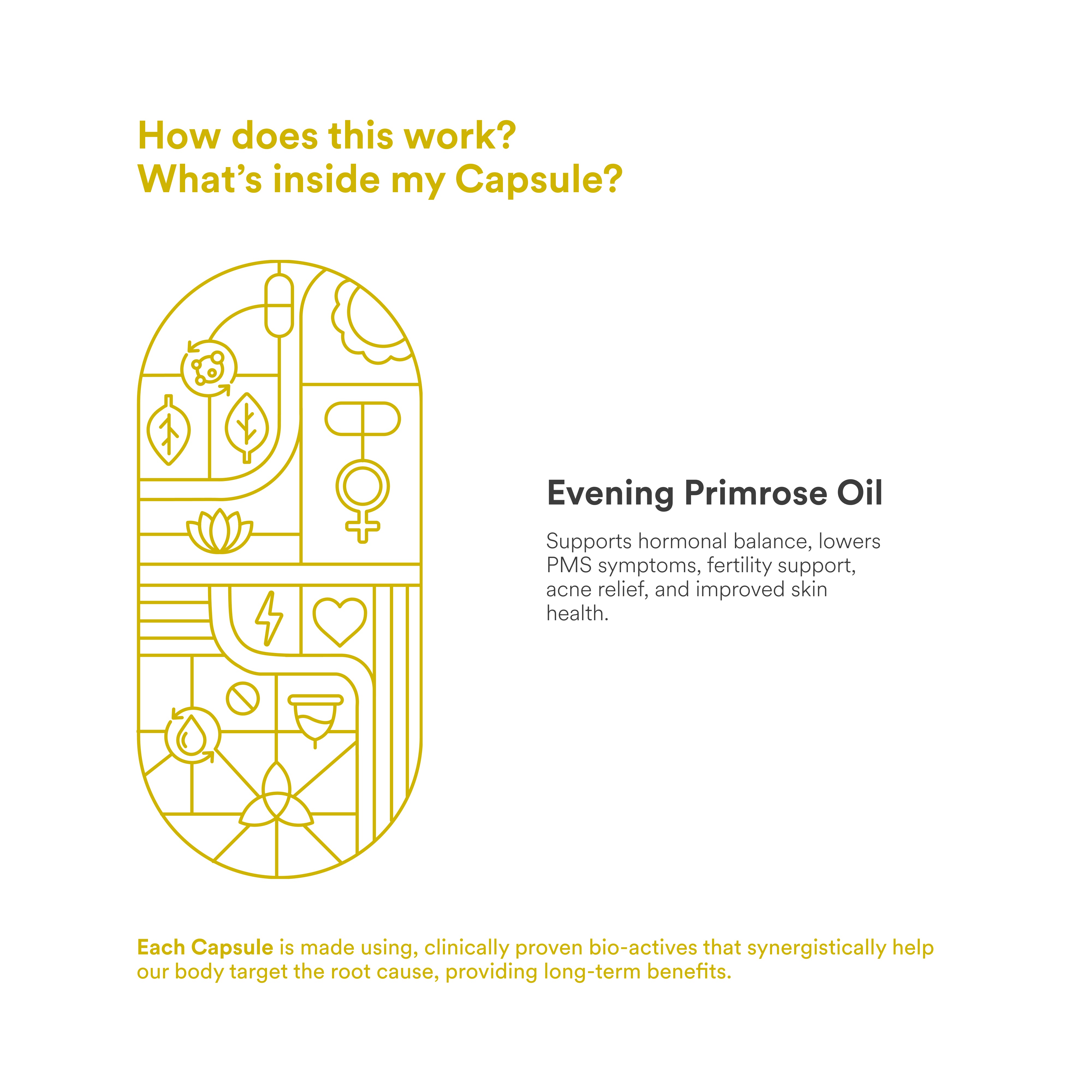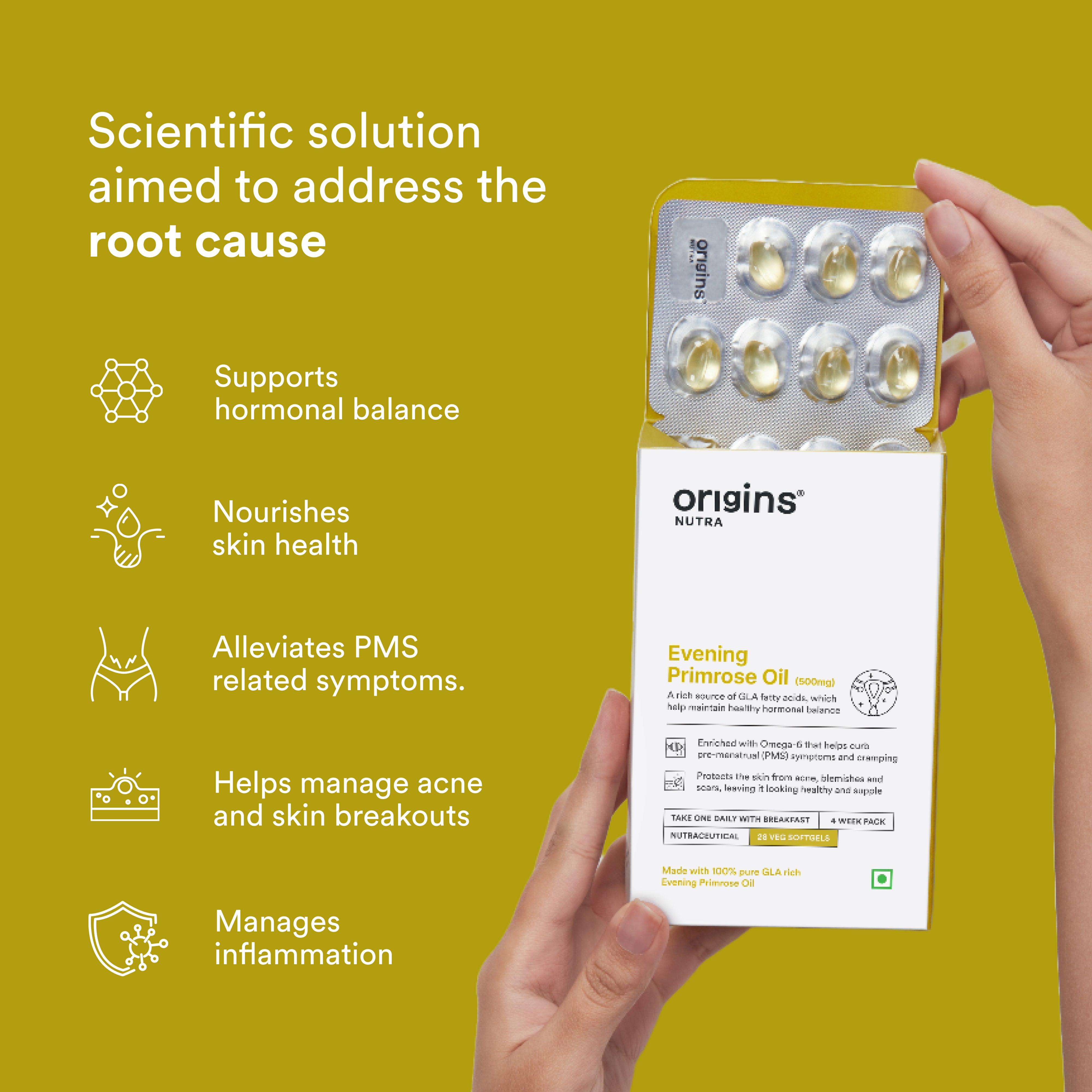 The oil in the capsules is rich in gamma-linolenic acid (GLA), which helps in regulating hormones and reducing inflammation.