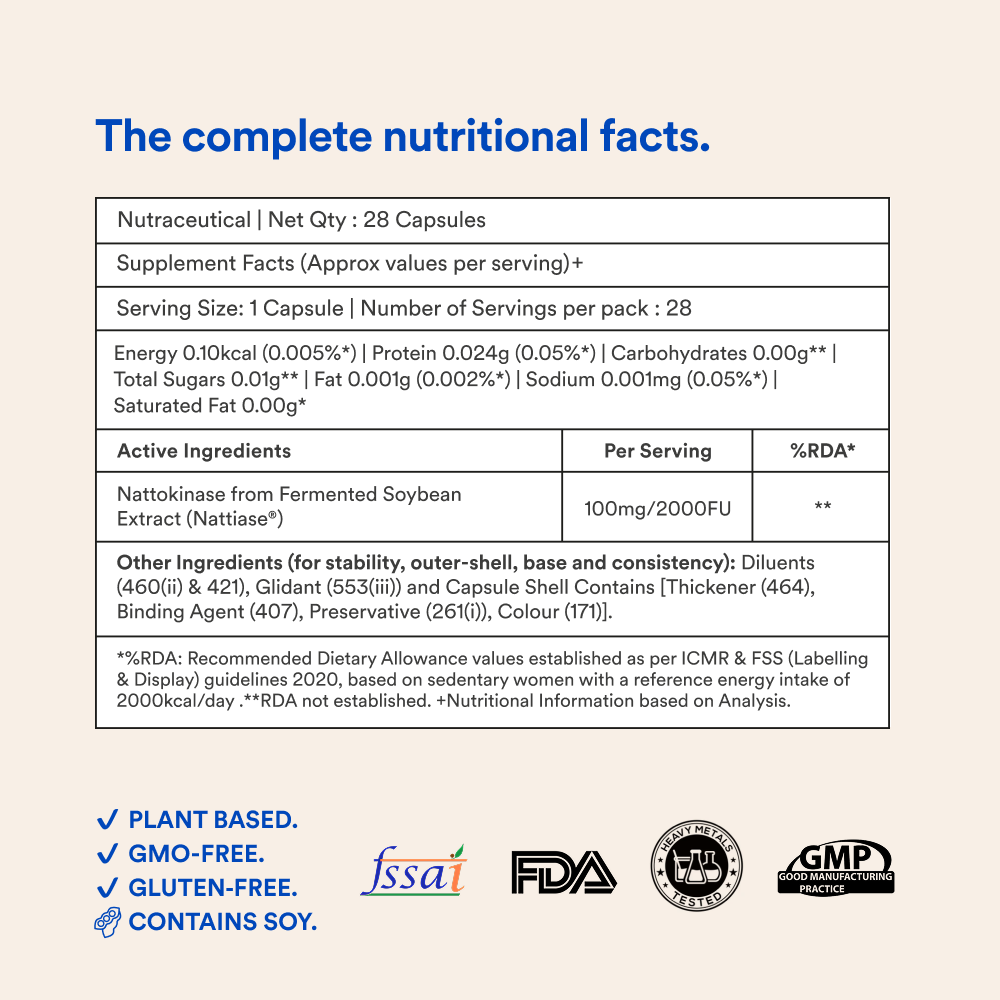 Nattokinase is a natural enzyme derived from fermented soy, commonly used to support healthy circulation and overall cardiovascular health.