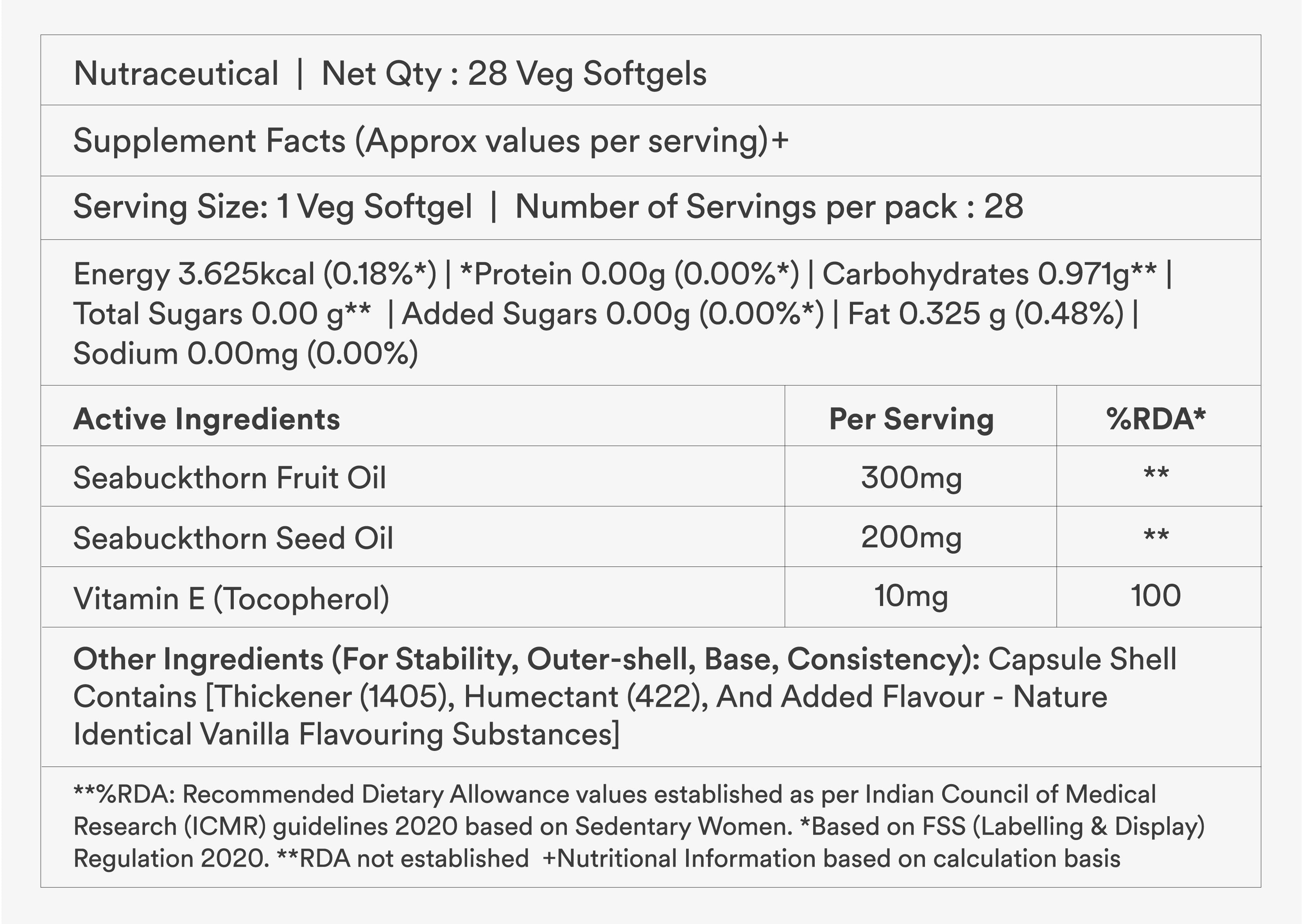 Sea Buckthorn Oil is generally well-tolerated, but some may experience mild skin acne. Use it consistently for 8-12 weeks to see better results.