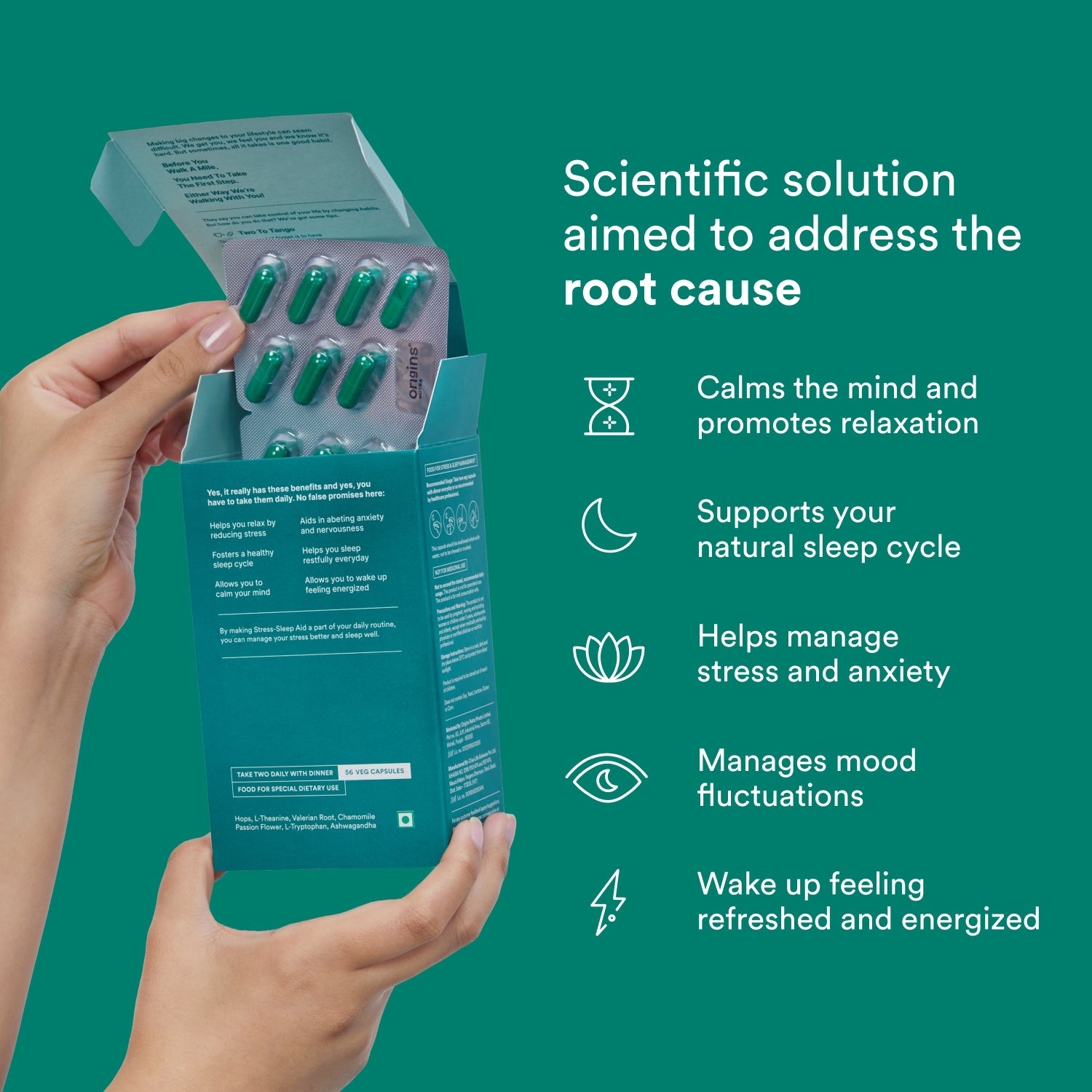 Have you ever wondered why stress and lack of sleep often seem to go hand in hand? When we’re constantly stressed, our bodies struggle to find balance and relaxation. Origins Nutra Stress & Sleep Aid is a thoughtfully crafted formula designed to help you unwind and effortlessly drift into peaceful sleep. You'll wake up feeling refreshed and energized, ready to take on the day.